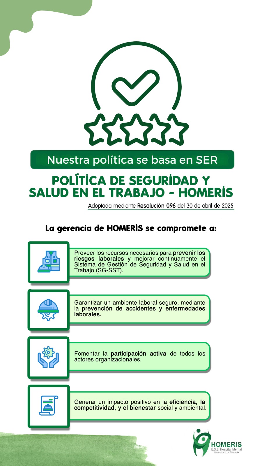 La E.S.E Hospital Mental Universitario de Risaralda, Adopta la política SST y establece en los siguientes compromisos: